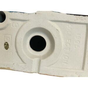 This vintage ceramic service station comes from the 1995 Winter Valley Villages collection, originally sold at Walmart. Featuring festive painted details like wreaths, garlands, and vintage-style gas pumps, this charming piece adds nostalgic character to any holiday village display.
