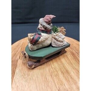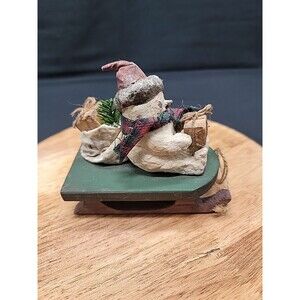 This vintage 1996 Arlene M. Wobler Woblers Woods Snowman Ornament is a perfect addition to your Christmas ornament collection. The irregularly shaped ornament features a multicolor all-over pattern and a handmade design. It depicts a snowman sledding down a hill and is sure to bring joy to anyone who receives it. 4x5"