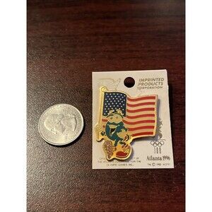 Vintage 1996 Atlanta Summer Olympics Izzy Mascot Carrying American Flag Hat Pin