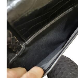 This vintage 1996 Brighton Donna bag is a stylish and elegant shoulder tote handbag in black crocodile-embossed leather. The bag features braided straps with a buckle accent, a heart theme, and a classic design suitable for various occasions such as travel, casual wear, formal events, workwear, or business settings. With a magnetic and button closure, inner pocket, and lined interior, this bag combines functionality with a timeless aesthetic. Perfect for the fashion-forward woman who appreciates classic and high-quality accessories.