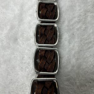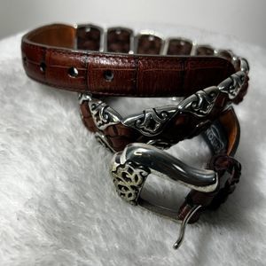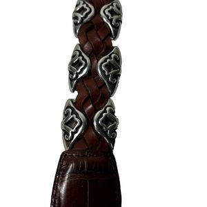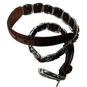 Vintage 1996 Brighton Brown Embossed Leather Belt Sz S Silver Metal Edges Buckle