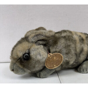 Super soft and realistic, this 1996 Aurora plush rabbit is a beautiful harlequin-style bunny with striking blue eyes and lifelike detail.