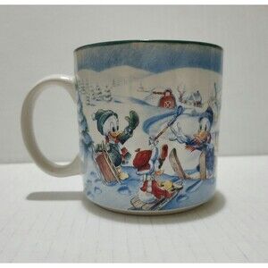 Vintage 1996 Disney Mickey's Winter Wonderland Ceramic Mug Blue White Red