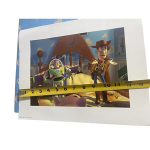 This is a rare piece of Disney memorabilia from 1996 that any Toy Story fan would love to have in their collection. It features an exclusive commemorative lithograph artwork of the beloved characters from the movie. The artwork was manufactured in the United States and is a contemporary piece of Disneyana that will make a great addition to any collection. The item is branded with the Disney franchise and is a must-have for collectors of Disney memorabilia. Measurements photographed. See pictures, please. Ships quickly
