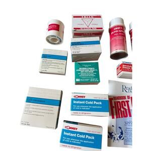 Vintage, expired lots. Items appear to be mostly complete/unused. Packaging has generally wear but nothing major.