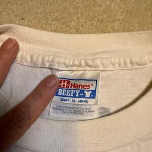 Original Frank Black “The Cult of Ray” 1996 Tour tee featuring minimalist face graphic on the front. Classic white single-stitch cotton with natural fade and soft vintage wear. A rare find from the solo era of the Pixies frontman — perfect for collectors of 90s alternative and indie rock merch.