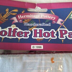 Vintage 1996 Handcrafted Golfer Hot Pad Hermitage Pottery Magnets Sealed