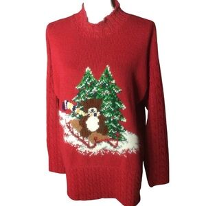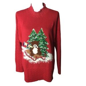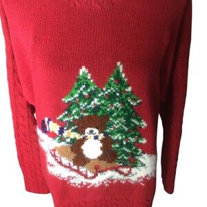 Vintage 1996 Marisa Christina Red Christmas Sweater Holiday Bear Size Medium