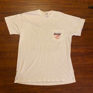 Selling a Vintage 1996 Mark Martin #6 Nascar White Graphic Pocket Tee Shirt size Large.