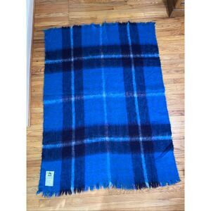 Vintage 1996 Mohair Wool Blue Plaid Blanket Throw