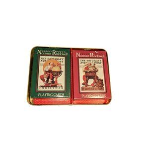 Vintage 1996 NORMAN ROCKWELL SANTA PLAYING CARDS TIN 2 Decks (still sealed)