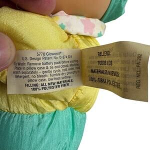 This is a vintage 1996 Playskool Gloworm plush doll by Hasbro. A nostalgic classic, Gloworm’s face lights up when squeezed, providing a comforting glow for little ones.