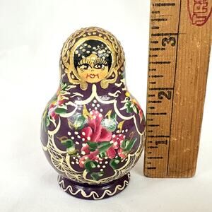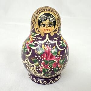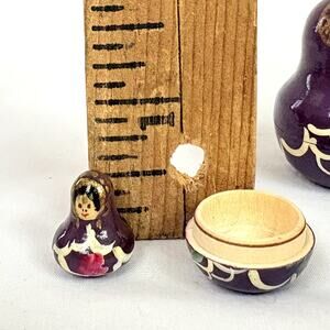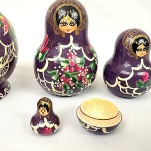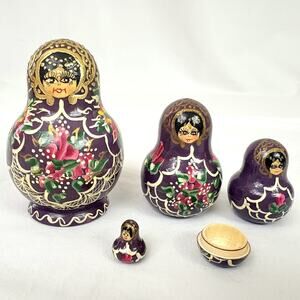 Vintage 1996 Signed Russian Matryoshka Nesting Dolls 5 pcs 3" - Missing One Top