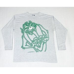 Vintage 1996 Taz T-Shirt Grey Large Long Sleeve Looney Tunes Cartoon 90s