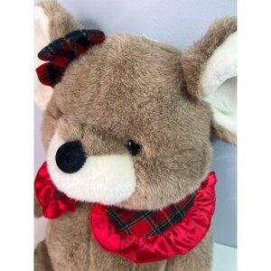 Vintage 1996 Walmart Holiday Mouse Tartan Bow Collar Plush Brown Stuffed Animal
