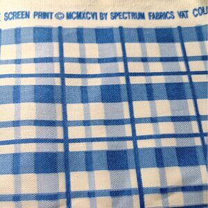 This Vintage 1996 Spectrum Cotton Home Decor Sewing Fabric in Blue Plaid is a 1.5 yard x 56" piece of durable cotton fabric suitable for table tops, home decor, and crafts. Made in the United States, this medium-weight fabric features a classic country blue plaid design, perfect for adding a touch of retro charm to your sewing projects. With its high-quality construction and timeless appeal, this fabric is a must-have for any sewing enthusiast looking to add a unique and vintage-inspired touch to their creations.