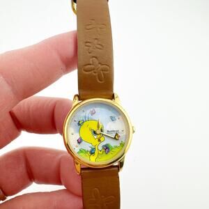 Armitron, Tweety Bird, Looney Tunes, vintage watch, kids watch, brown leather strap, water-resistant, 1997, collectible watch, animated character, yellow cartoon character, collectible timepiece, nostalgic watch, cute cartoon watch, unisex watch, kids accessories, Looney Tunes memorabilia, casual watch