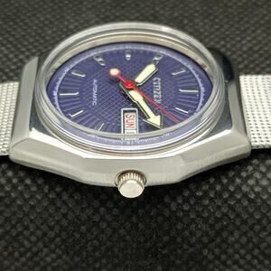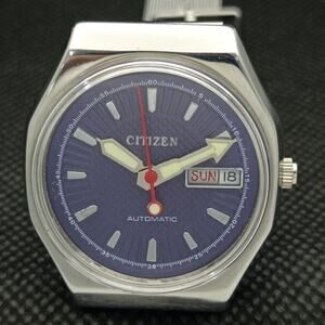 Vintage 1997 Citizen Automatic Mens Silver Watch W/daydate & Blue accents