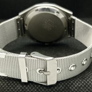 This watch has a stainless steel case in great condition with almost no flaws. The face features Silver accents on a Blue Face giving an awesome vintage look overall. It also has a date function!