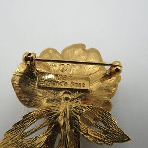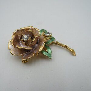 Vintage 1997 England's Rose Flower Brooch Gold Tone Enamel Rhinestone Pin Jewelr