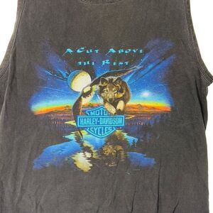 Vintage 1997 Harley Davidson Wolf Bikercore Grunge Faded Muscle Tank/Tee