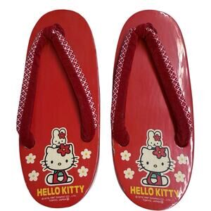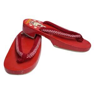 Vintage 1997 Hello Kitty Wooden Geta Sandals Japan Sanrio Red Flip Flops Kids