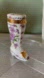 Add a touch of shabby chic with this collectible charming and adorable 4” Lefton porcelain hinged trinket box, shaped like a Victorian-style boot and decorated with hand-painted purple violets and gold accents. A lovely vintage 1997 release, pattern #11327, this piece features the original Lefton foil label, clear maker’s marks, and a working metal hinge with ornate clasp. A beautiful and harder-to-find for Lefton collectors.