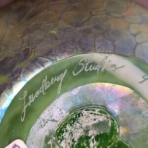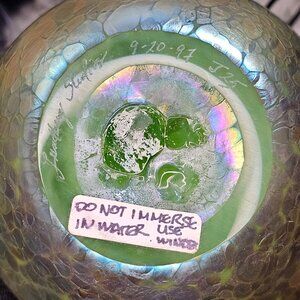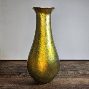 Vintage 1997 Lundberg Studios Gold Iridescent Art Glass Vase 10”
