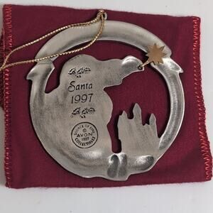 Vintage 1997 Pewter Avon Collectibles Santa Christmas Ornament in Box-2 3/4"