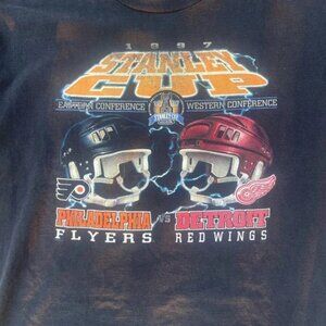 ๐ Vintage 1997 Stanley Cup Lee Sport Philadelphia Flyers vs Detroit Red Wings Shirt ๐