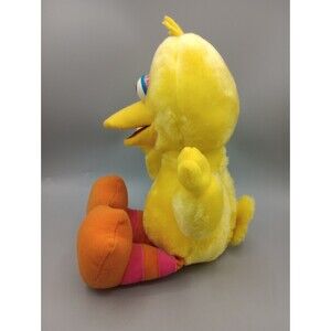 The product is a vintage 1997 TYCO Sesame Street 10" Tickle Me Big Bird plush toy that laughs and talks. This plush is part of the Sesame Street character family and is recommended for ages 1 and up. Made in China by Tyco, this 12 inch small-sized plush is designed to entertain young children with its interactive features. Perfect for fans of the Sesame Street show, this vintage collectible brings nostalgia and joy to both children and adult collectors.