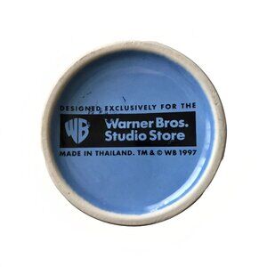 This vintage 1997 coffee mug cup features the beloved Looney Tunes characters Tweety Bird and Sylvester the Cat on both sides. Made of ceramic material and manufactured in Thailand, this collectible item is a must-have for any fan of the iconic TV show. The blue color adds a pop of fun to any kitchen or collection. Perfect for coffee or tea, this mug is sure to bring a smile to your face every morning.