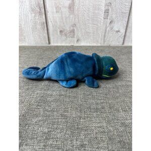 A nostalgic collectible from the late 90s Beanie Babies craze, this blue plush companion offers soft texture and retro charm for display or memory keeping.