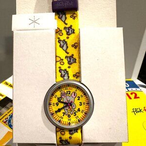 Vintage 1997 Yellow Mouse Theme Flik Flak Kids Swiss Made Watch – New in Box