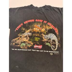 Vintage 1998 Budweiser They Never Saw It Coming T-Shirt Black Size XL