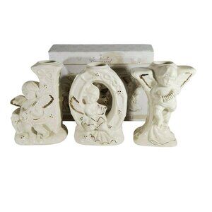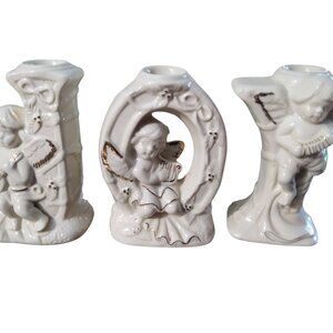Vintage 1998 Crown Glazed Ceramic Joy 3pc. Candle Holder Set