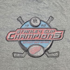 Celebrate hockey history with this vintage 1998 Detroit Red Wings Stanley Cup shirt in XL. Featuring a 24x28 fit and a bold design, perfect for fans of the Red Wings' 1998 Stanley Cup Championship and retro NHL fashion!