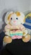 vtg 90s retro nostalgic nostalgia kids toy play peek a boo touch n and tank plushie stuffie easter holiday march basket baby infant toddler spot spotted white tan beige Pastel Dress plush rabbit, stuffed animal, kinder kids, pastel dress, new 1998, children's toy, soft bunny, collectible plush, gift idea, pastel colors, cuddly toy, stuffed bunny, white and yellow