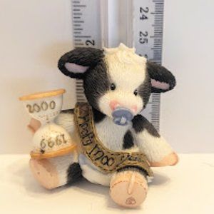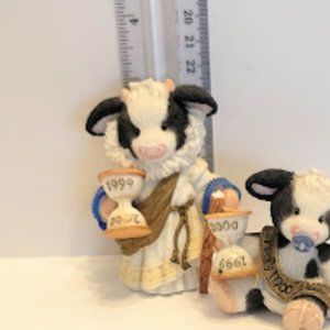 This adorable vintage 1998 Mary's Moo Moo's Cow Figurine Millennium Edition “Hoofy New Year“ 2 Pc. Collectible is from an estate sale, Figurine is in excellent condition, wrapped. Box may show some wear from storage, but figurine has no damage. Measures approx 2" and 3". Old year 1999 to New Year 2000