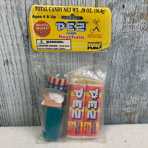 Vintage 1998 Uncle Sam USA Patriotic Hat PEZ 2 Candy Keychain Original Package
