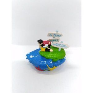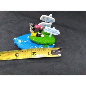 Vintage rare and hard to find 1998 Universal Studios Island of Adventures Dr. Seuss heavy PVC or similar Figurine. Measures approximately. 3" across, 1.75" wide and 2.75" tall. Figures are from "One Fish, Two Fish, Red Fish Blue Fish" and Jay and Kay (referred to as in the video version). It also has Sign posts with arrows pointing "To THERE", To HERE" and Universal Studios Adventure Island". FAIR CONDITION due to the following; in which I didn't notice at first but after looking closely there is a wear mark on the front of the figurine where once The fat fish with the yellow hat stood out of the water is no longer present. For more details, please study all pictures.