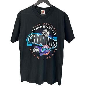 Vintage 1998 Utah Jazz NBA T Shirt Black Western Conference Champs Single Stitch
