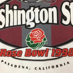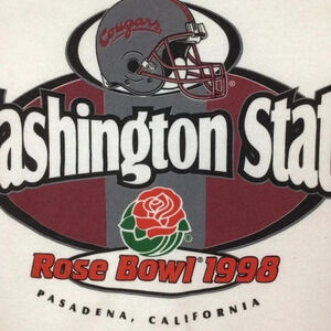 Vintage 1998 Washington State Rose Bowl Crewneck sweatshirt. Large front graphic. XL. 24 inches pit to pit, 28 inches long. No rips or tears. Lightweight. Smoke and pet free home. Vintage WSU. Cougars. Pullman Washington. Pasadena California. WAZZU.