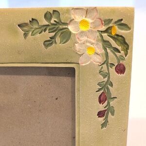Vintage 1998 Burnes of Boston Cottage Green Embossed Floral Photo Picture Frame. Hand Painted.