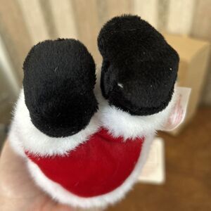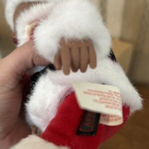 The Vintage 1999 Anne Geddes African Black Baby Santa Claus Doll is a collectible 9" doll designed with a soft body and medium dark complexion, perfect for Christmas-themed play. This original baby doll from the 1990s features a unique design by artist Anne Geddes, with brown eyes and no hair, making it a special addition to any doll collection. Made of vinyl and cloth, this gender-neutral doll comes with an outfit and is packaged in its original opened packaging, adding to its charm as a nostalgic piece from the past.