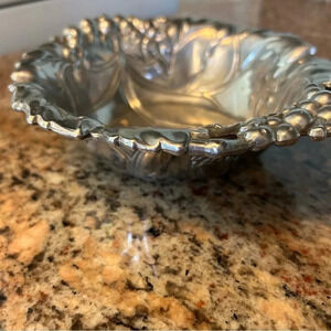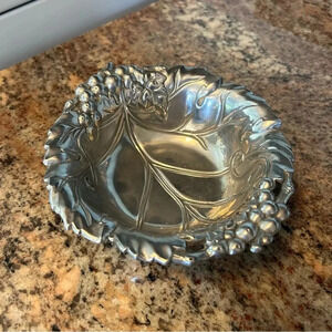 tags: Arthur Court Designs, vintage 1999 dish, grapevine pattern, grape and leaf motif, aluminum serveware, collectible tableware, small serving dish, vintage kitchen decor, Arthur Court grape collection, decorative metalware