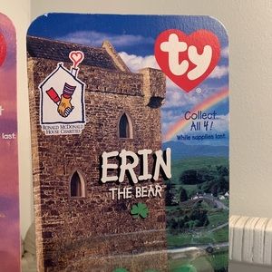 Vintage and in great shape. Sadly both boxes were sealed and then I dropped Erin. 🤦🏻♀️😬 I highly recommend not dropping these guys because the glue can’t hold on. Discounted price for my goof. These bears were part of a 4 bear release that covered different countries. Feel free to ask questions and offers always welcome. :)