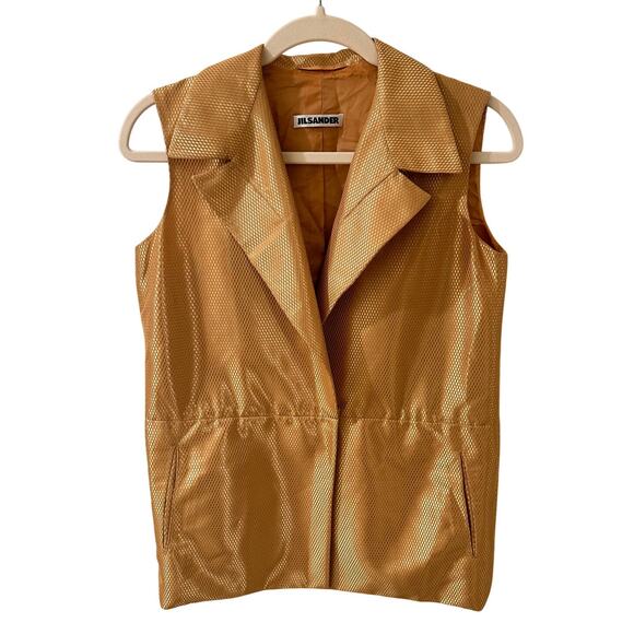 Vintage 1999 Jil Sander Women's Sleeveless Metallic Gold Mesh Vest, size 2 (34) NWOT.