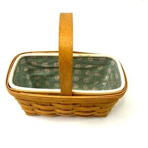 Vintage 1999 Longaberger Rectangular Basket w/ Handle Sage Leaf Liner Protector