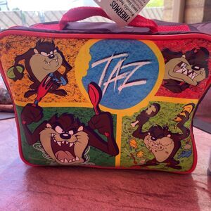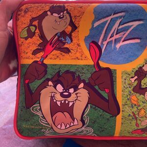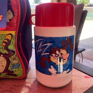 Vintage 1999 Looney Tunes Taz Insulated Lunch Bag Soft Lunchbox with Thermos